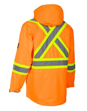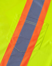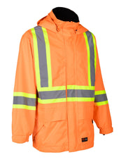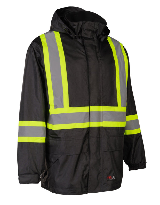 This garment has been tested in accordance with the test method CAN/CGSB-4.2 No.27.10 & ASTM D6413 Flame Resistance, Self Extinguishing for Momentary Contact with Open Flame. In contact with flame, this garment will resist ignition, and /or self-extinguish. The intended use of the garment is for protection from liquids including water, oil, light acids, and caustics. This garment also provides wind resistance and acts as a thermal layer against harsh elements, while providing increased visibility of the wearer. This garment is not intended as protection from hydrocarbon flash fires, electric arc hazards, or welding sparks.