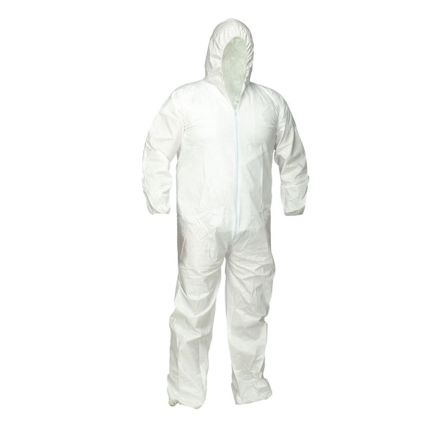 The Microporous Disposable Coverall with Hood, made from 100% polyolefin, features a hood, zip-front, and elastic at the wrist, ankle, and hood. It offers barrier protection against dry particulate hazards, ensuring an optimal balance of protection, durability, and comfort.