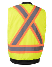 This garment has been tested in accordance with the test method CAN/CGSB-4.2 No.27.10 & ASTM D6413 Flame Resistance, Self Extinguishing for Momentary Contact with Open Flame. In contact with flame, this garment will resist ignition, and /or self-extinguish. The intended use of the garment is for protection from liquids including water, oil, light acids, and caustics. This garment also provides wind resistance and acts as a thermal layer against harsh elements, while providing increased visibility of the wearer. This garment is not intended as protection from hydrocarbon flash fires, electric arc hazards, or welding sparks.