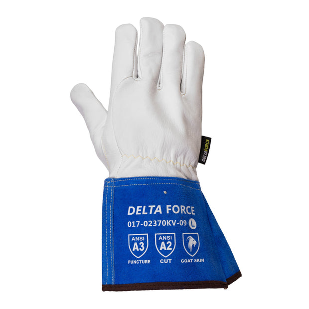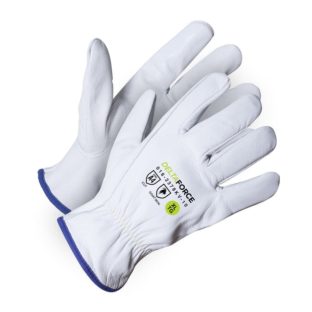 Les gants en peau de chèvre Deltaforce pour femmes offrent une protection de premier ordre avec un dos de la main en TPR résistant aux chocs, conforme aux normes ANSI/ISEA 138, niveau 2, et une doublure en tricot DuPont Kevlar® pour une sécurité contre les coupures ANSI A5. Améliorés avec 3M™ Thinsulate™ pour une chaleur supérieure, ces gants offrent également une résistance et une solidité élevées à l'abrasion, complétées par un poignet élastique facile à enfiler pour empêcher la pénétration de saleté et de débris.