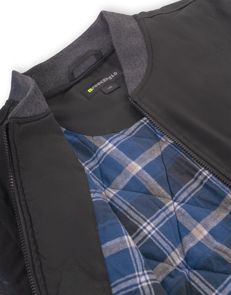 Veste de travail en toile robuste avec manches en polaire douillettes. Dotée d'une fermeture à glissière lisse et d'une doublure chaude en flanelle à carreaux. Allie durabilité et touche de style classique pour un usage quotidien.