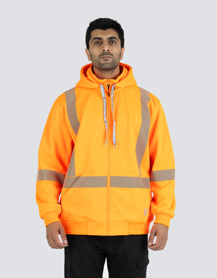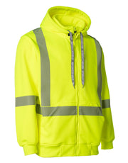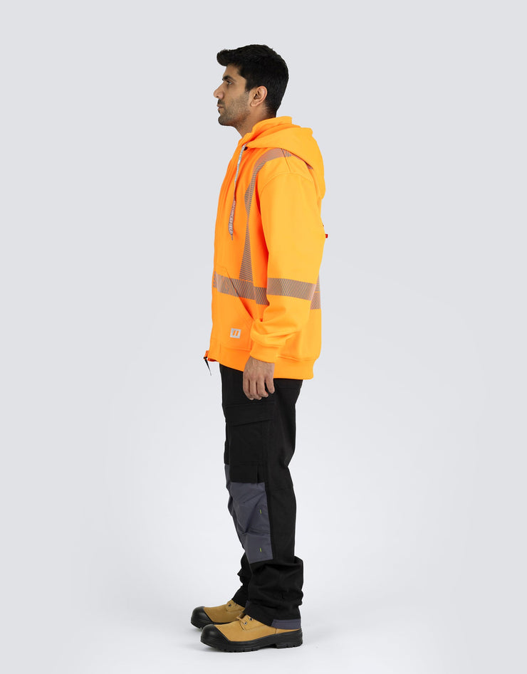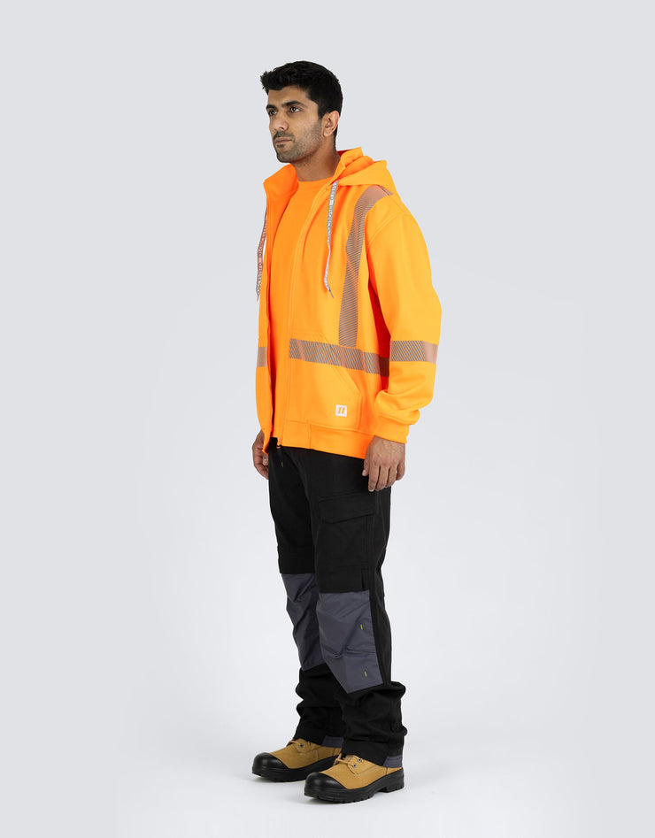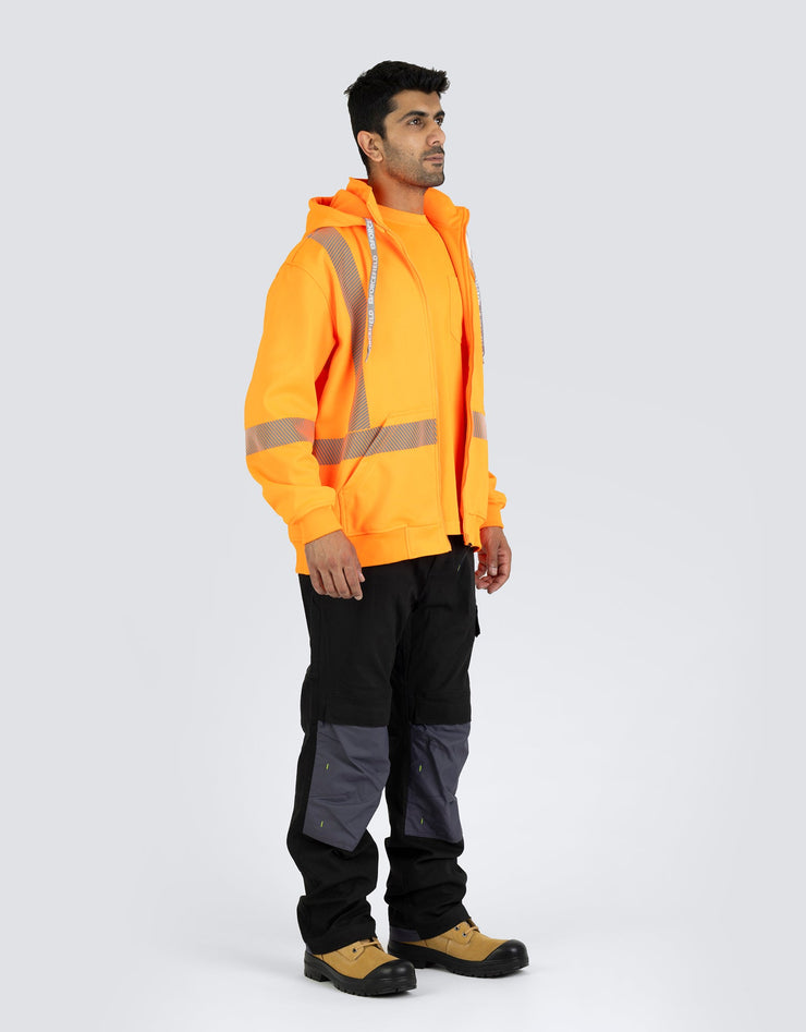 Ce sweat à capuche de sécurité haute visibilité est doté d'une polaire brossée d'un côté de 300 g/m² de luxe, d'une bande réfléchissante segmentée pour plus de flexibilité et d'une fermeture éclair avant durable. Équipé d'une poche kangourou, d'une capuche à boutons-pression et de poignets et d'un ourlet en tricot côtelé robustes pour un confort et une visibilité optimaux.