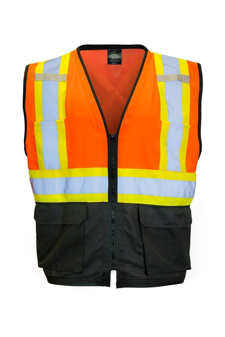 Our most comfortable traffic vest yet. This vest is a solid body (non-5 point tear away) construction. The zipper on the front means no more velcro messing with the treads of your sweater. And the padded collar makes this stand out as the traffic vest your colleagues will envy.