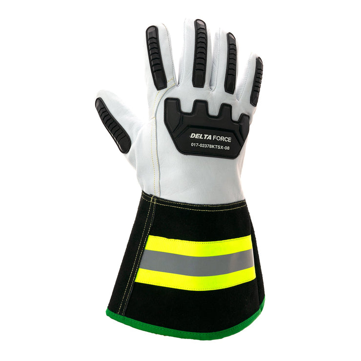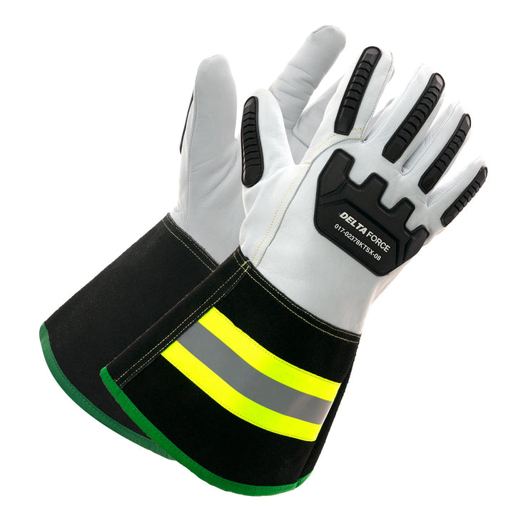 Engineered for tough environments, this glove features ANSI/ISEA 138 Level 2 impact protection and ANSI A5 cut resistance. A DuPont™ Kevlar® knit liner boosts cut safety, while the durable cowsplit gauntlet cuff with reflective strip ensures extended coverage, visibility, and protection from debris, sparks, and impact hazards.