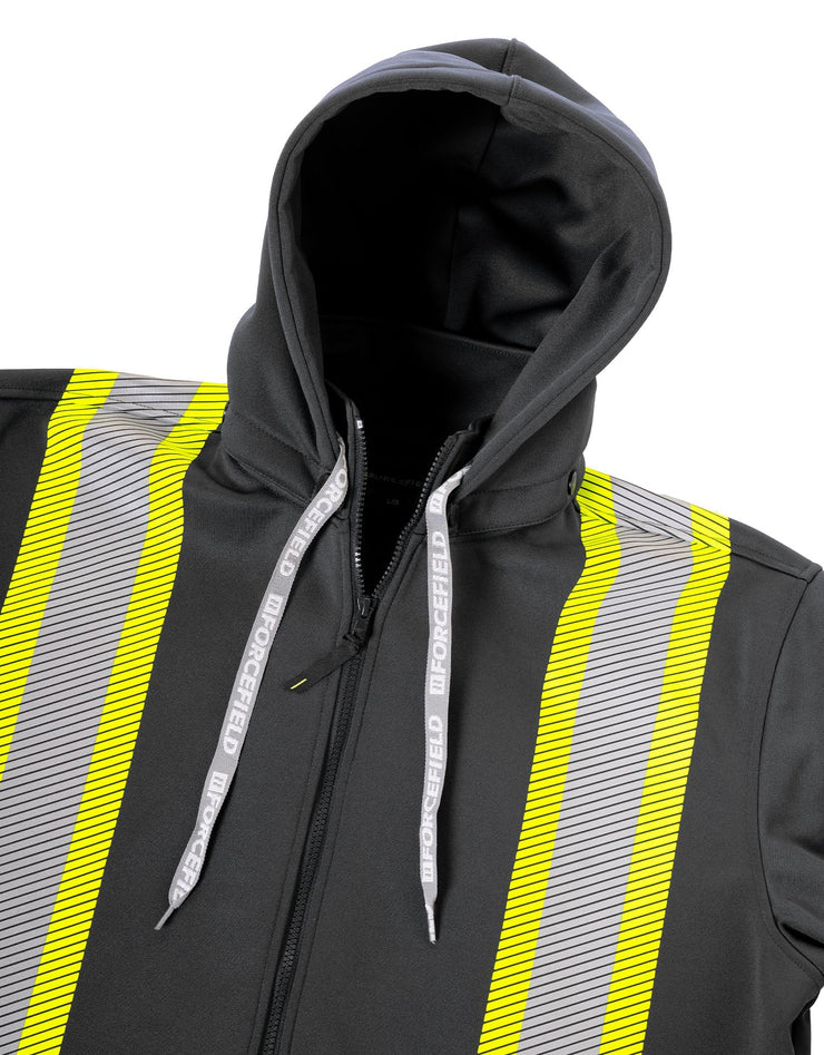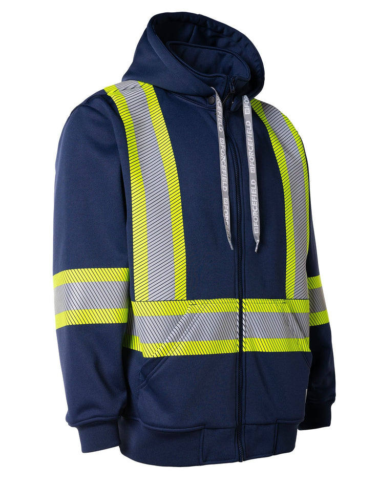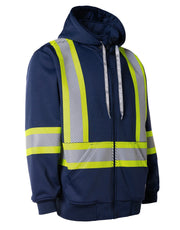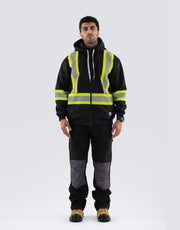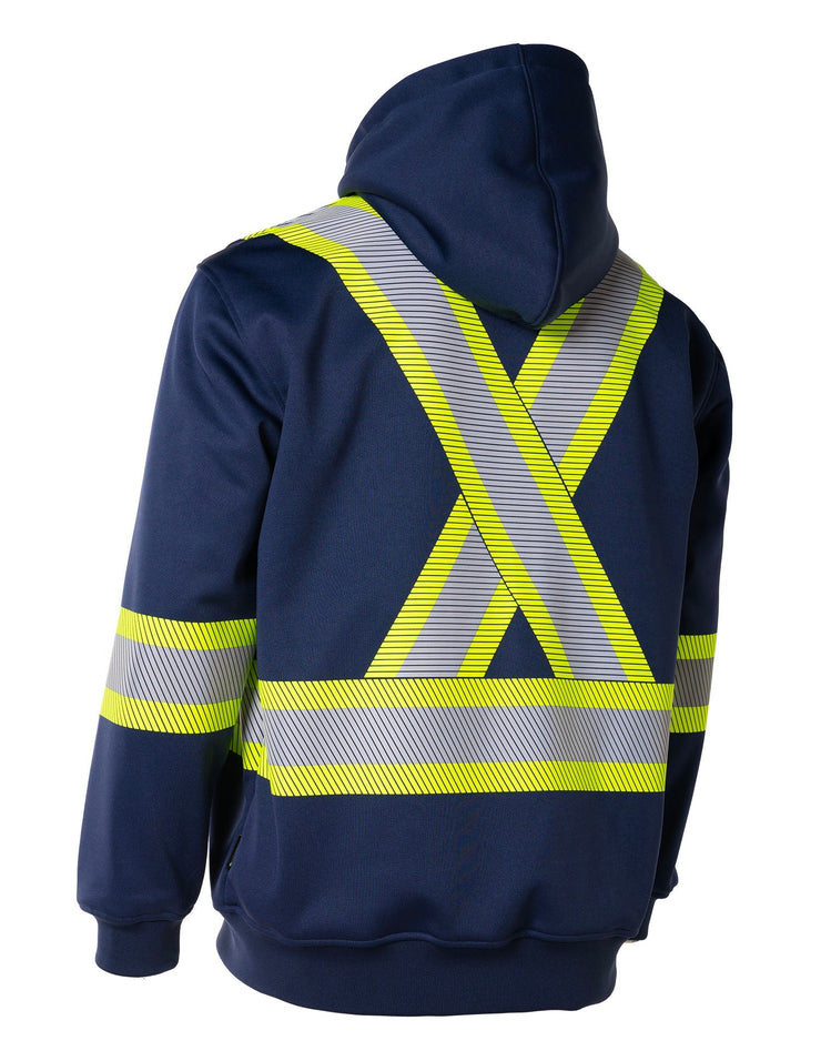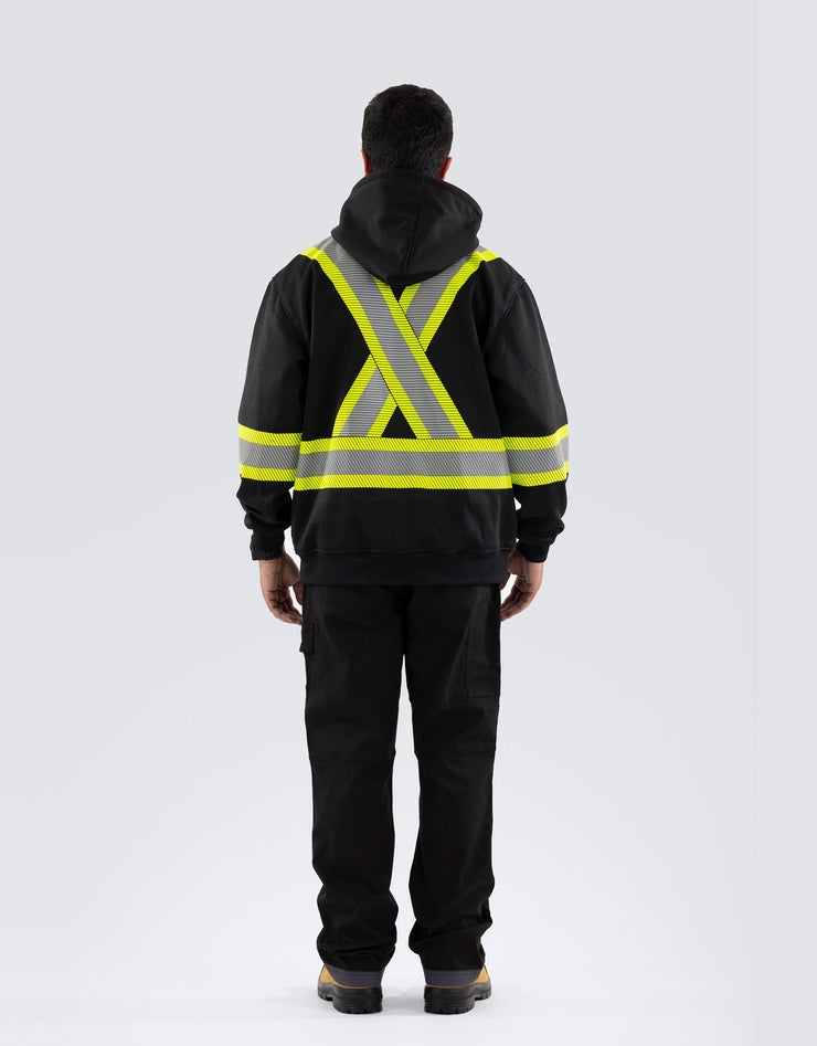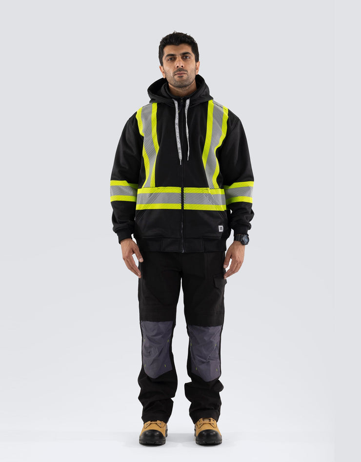 Enhance workplace safety with this high-visibility hoodie, featuring segmented reflective tape and a detachable double-layer hood. Constructed from deluxe 300 GSM fleece, it includes a kangaroo pocket, full-length zipper, rib-knit cuffs, and a heavy-duty elastic hem for ultimate comfort and visibility.