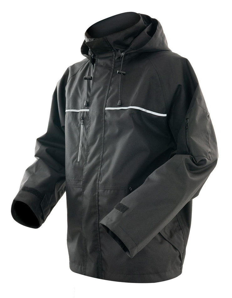 Introducing the Dry Core Rain Jacket: Engineered for the relentless adventurer, this jacket combines rugged polyester 60OD Oxford fabric with a waterproof, breathable coating. It features fully sealed seams, reflective safety accents, strategic ventilation, and a detachable hood, ensuring you stay dry and visible, no matter the weather.