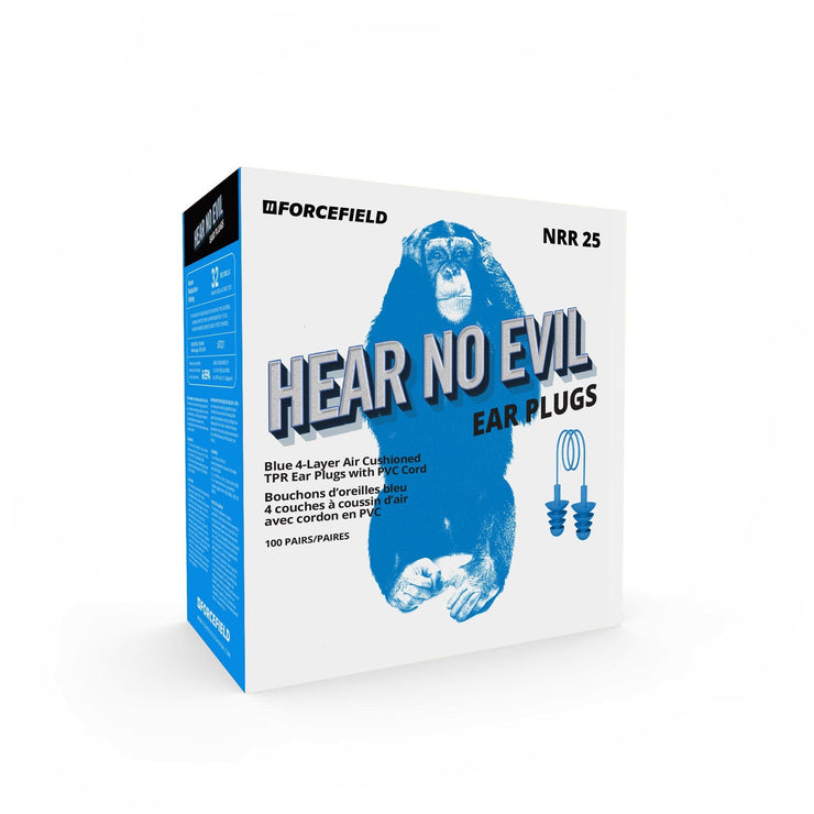 Forcefield "Hear No Evil" Blue Corded TPR Metal Detectable Earplugs, Box of 100 Pair
