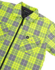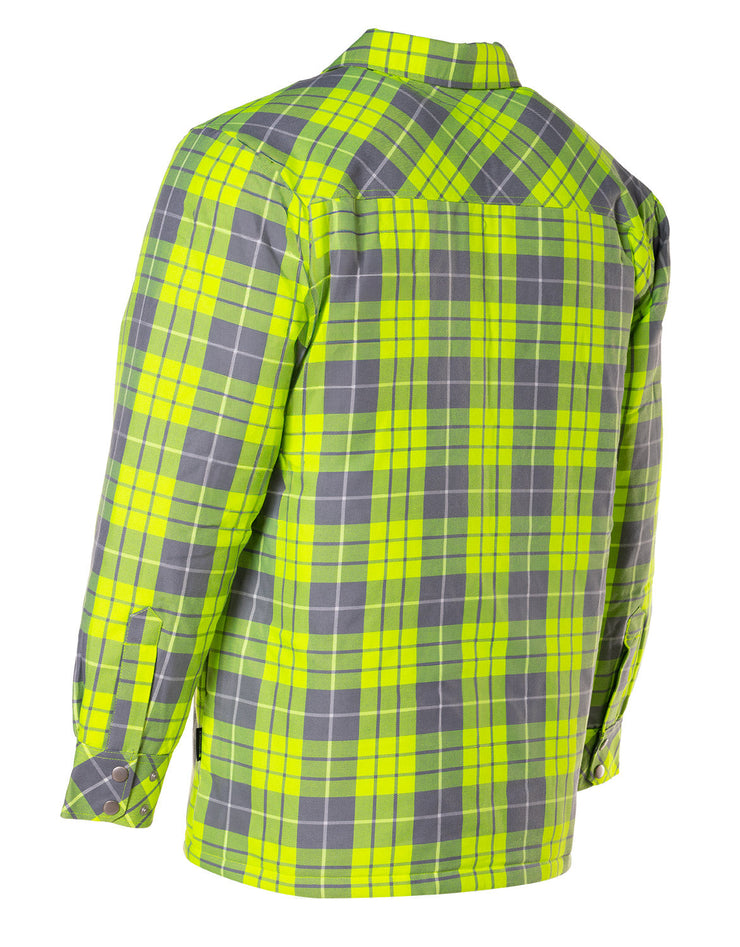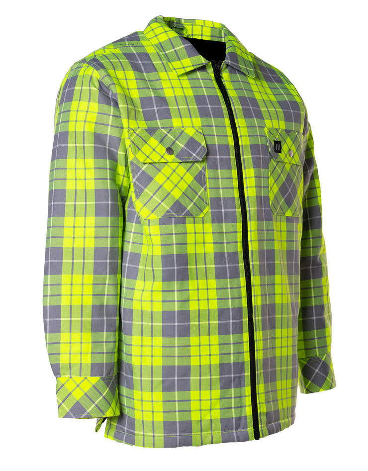 • 100% Polyester flannel shell • Quilt-lined for warmth with 5 oz polyester insulation • Zipper front closure • Six pockets: four outer, two inner • Adjustable snap cuffs